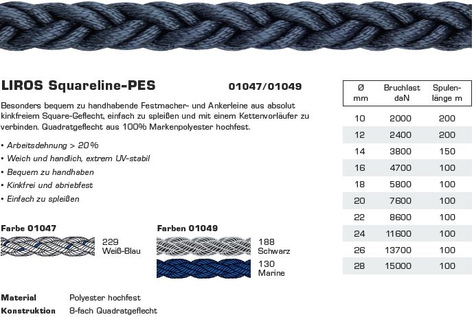 LIROS Squareline PES 8-fach Quadratgeflecht - farbig - Ø 22mm -- bei www.seile-boehner.de